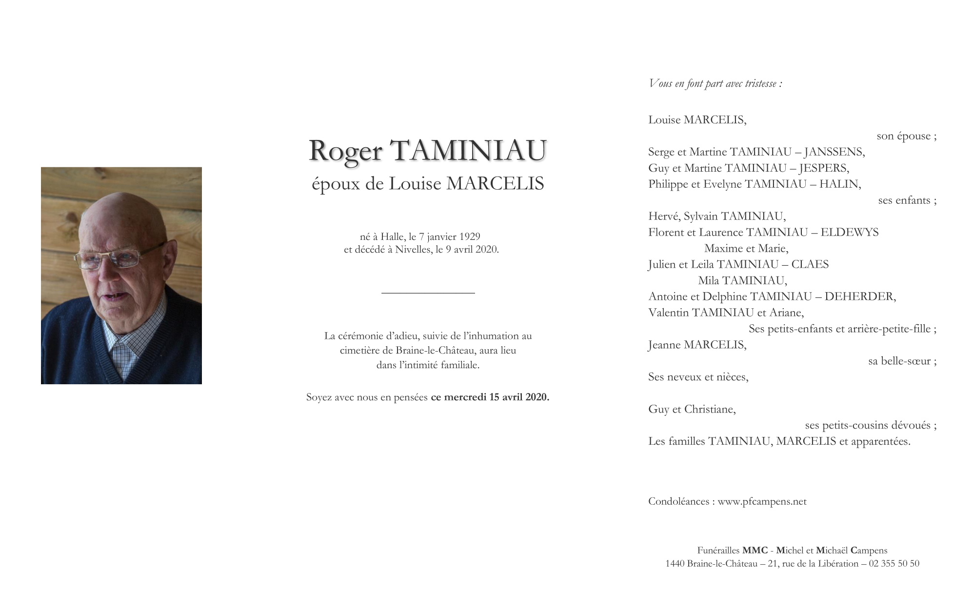 Décédé à Nivelles (1400) le jeudi 9 avril 2020 à l'âge de 91 ans