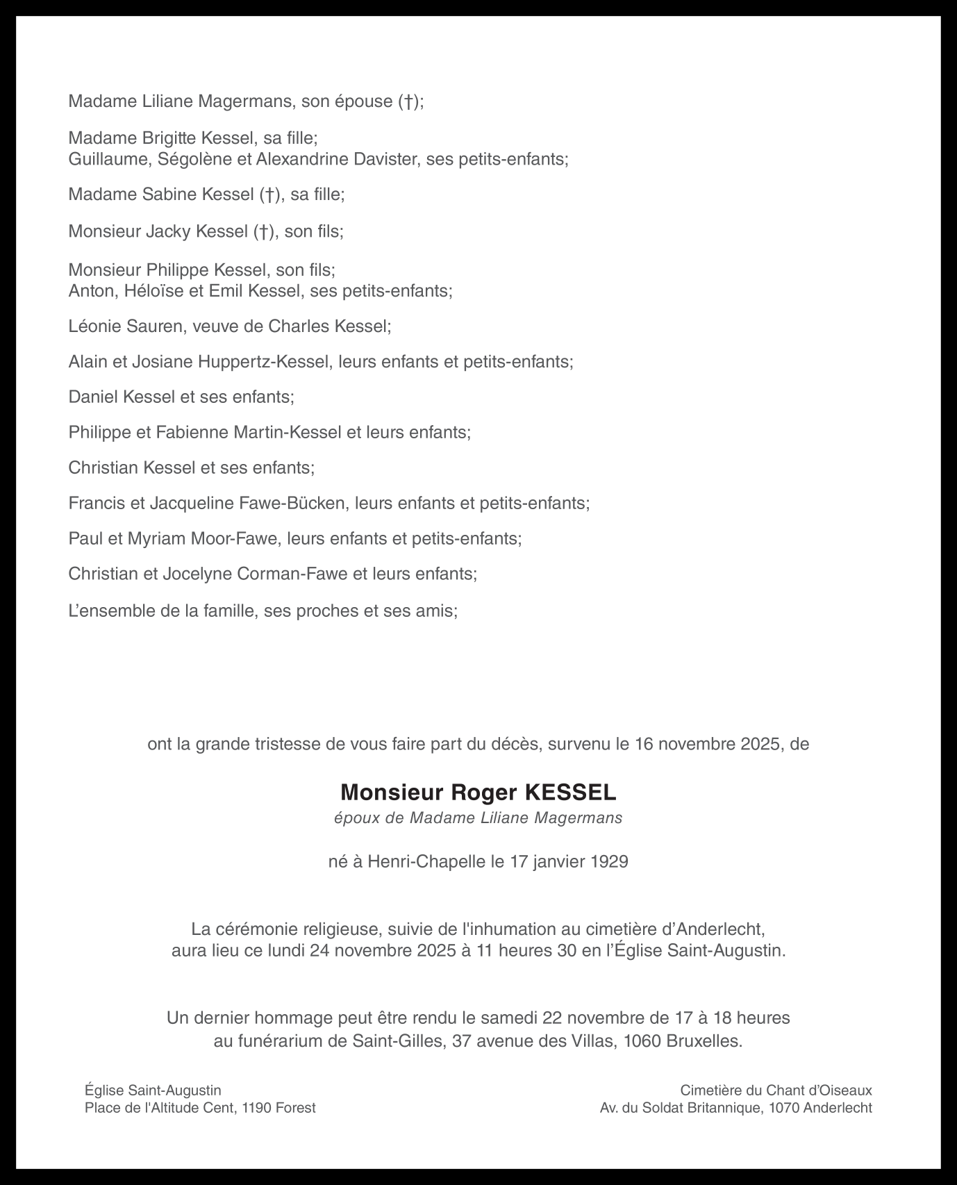 Décédé à Forest (1190) le dimanche 16 novembre 2025 à l'âge de 96 ans