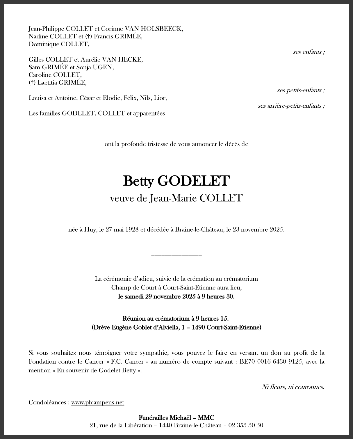 Décédée à Braine-le-Château (1440) le dimanche 23 novembre 2025 à l'âge de 97 ans