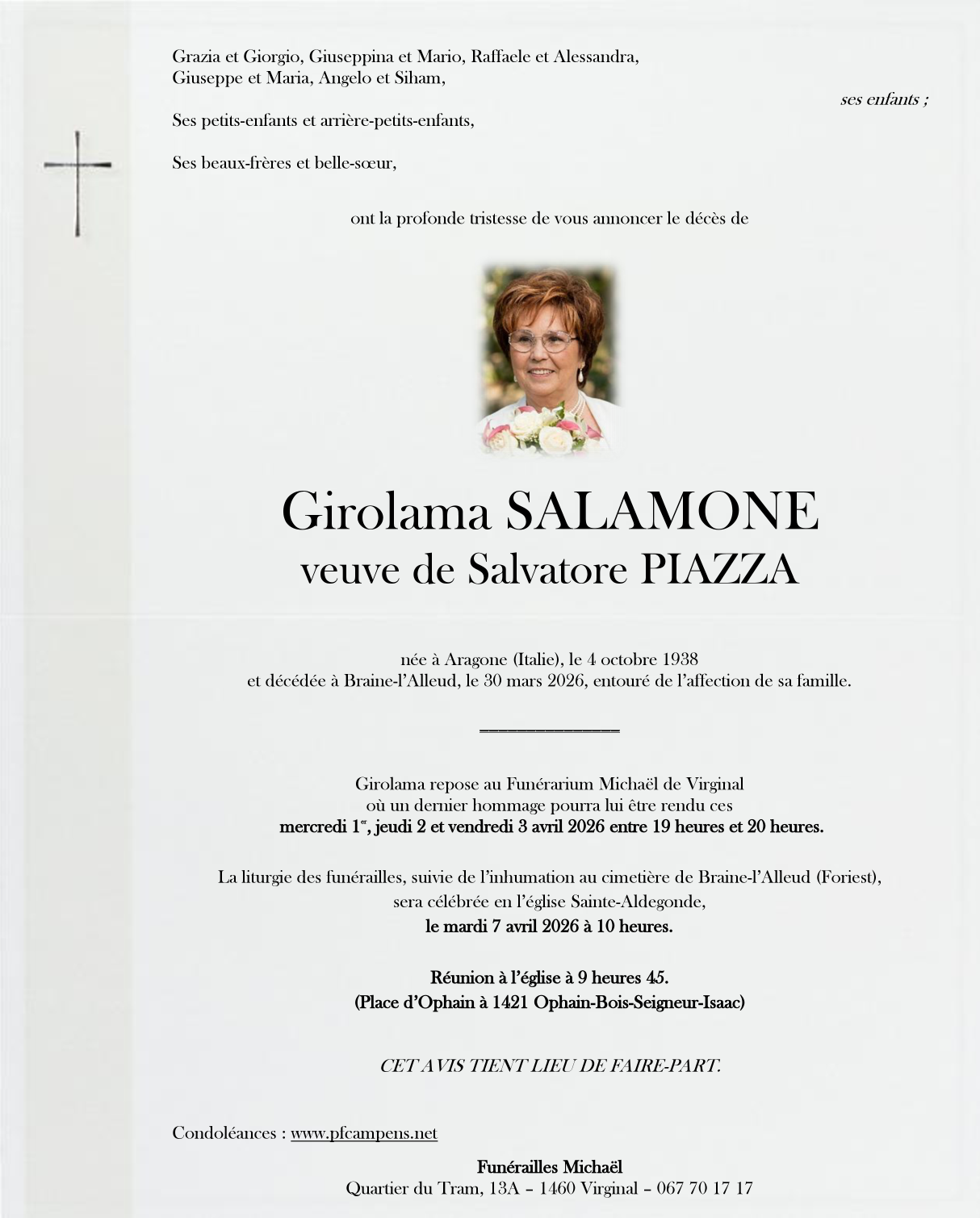 Veuve de Monsieur Salvatore PIAZZA