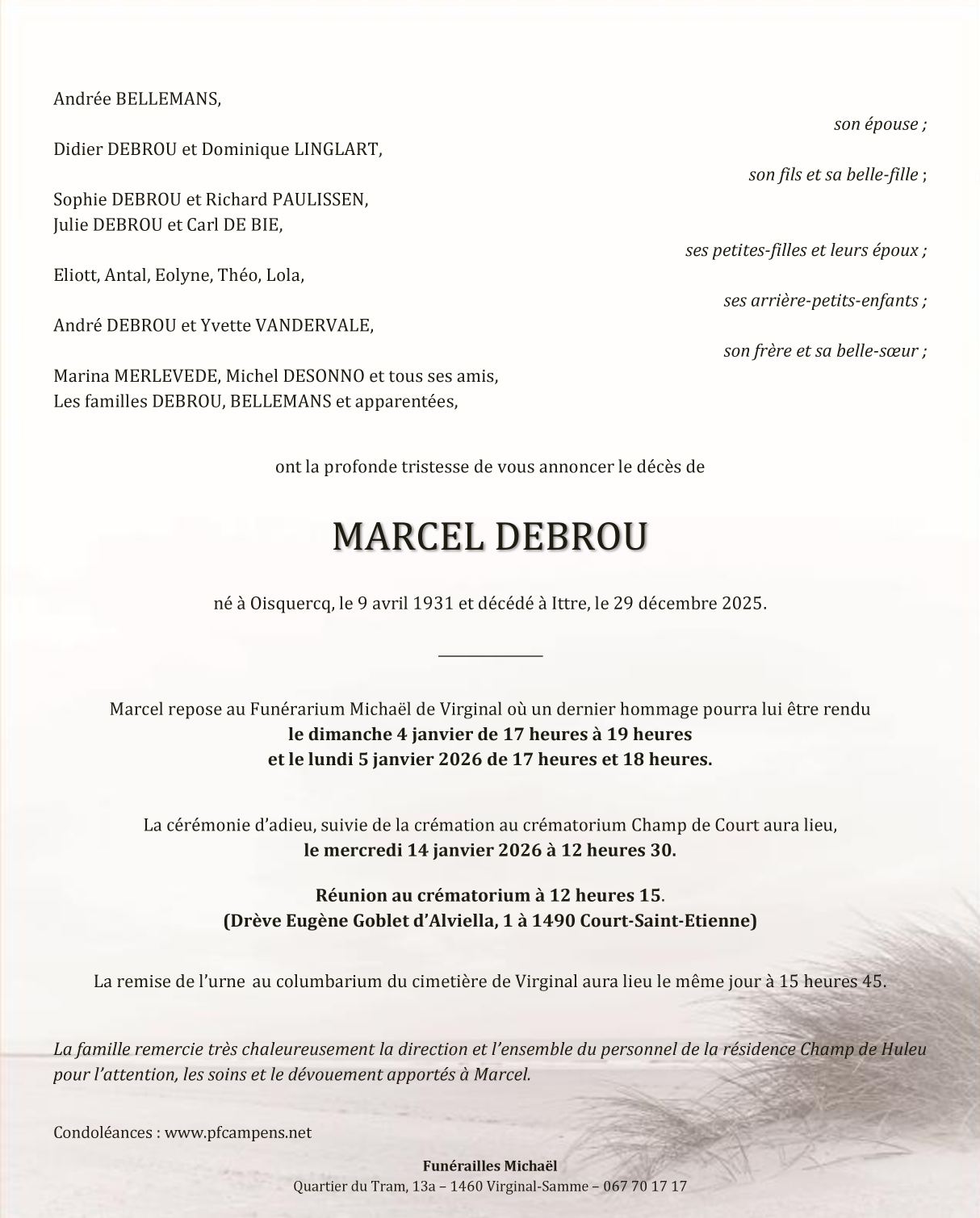 Décédé à Ittre (1460) le lundi 29 décembre 2025 à l'âge de 94 ans