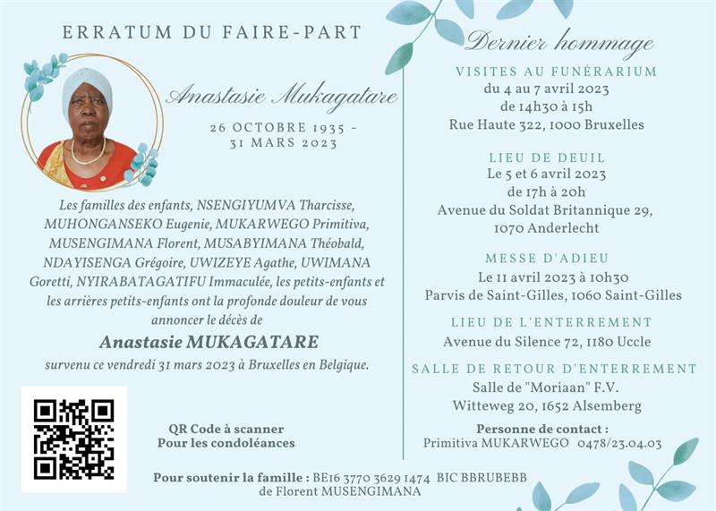 Née à Kamonyi (Rwanda) le samedi 26 octobre 1935