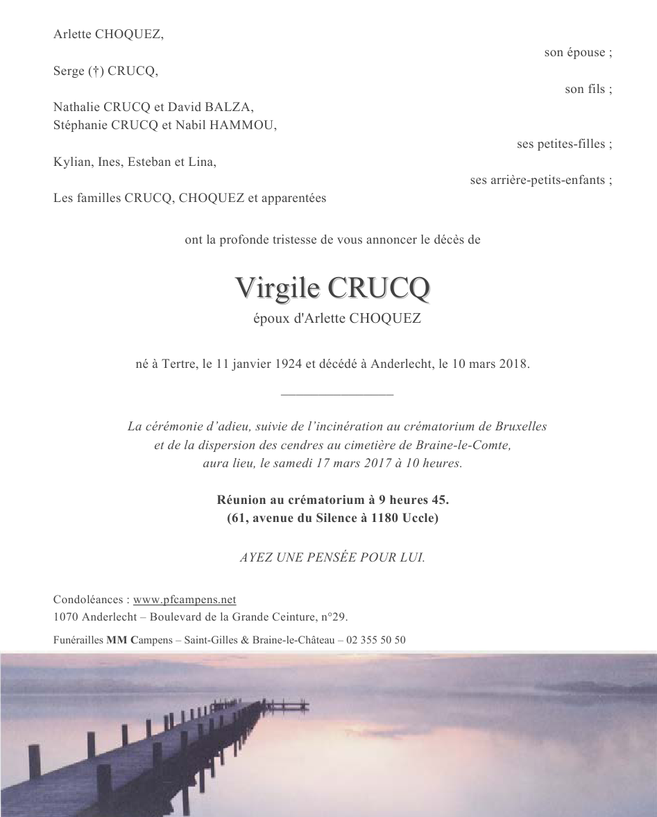 Décédé à Anderlecht (1070) le samedi 10 mars 2018 à l'âge de 94 ans
