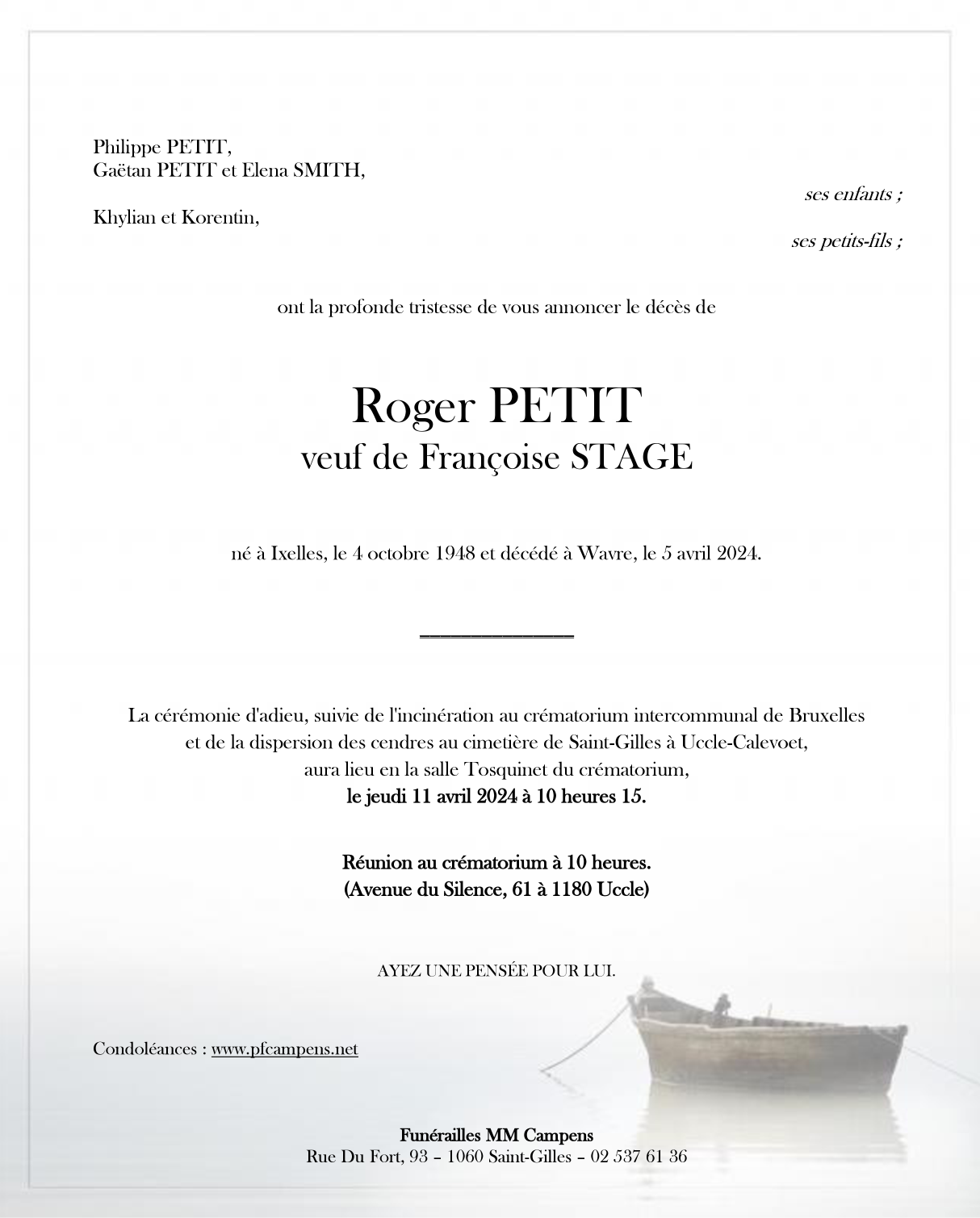 Décédé à Wavre (1300) le vendredi 5 avril 2024 à l'âge de 75 ans