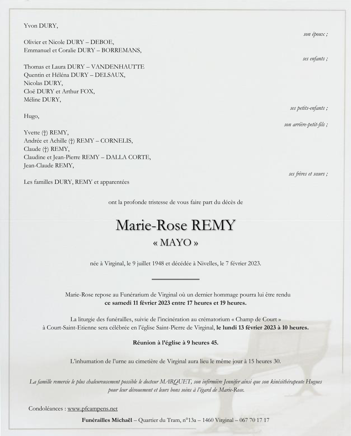 Décédée à Nivelles (1400) le mardi 7 février 2023 à l'âge de 74 ans