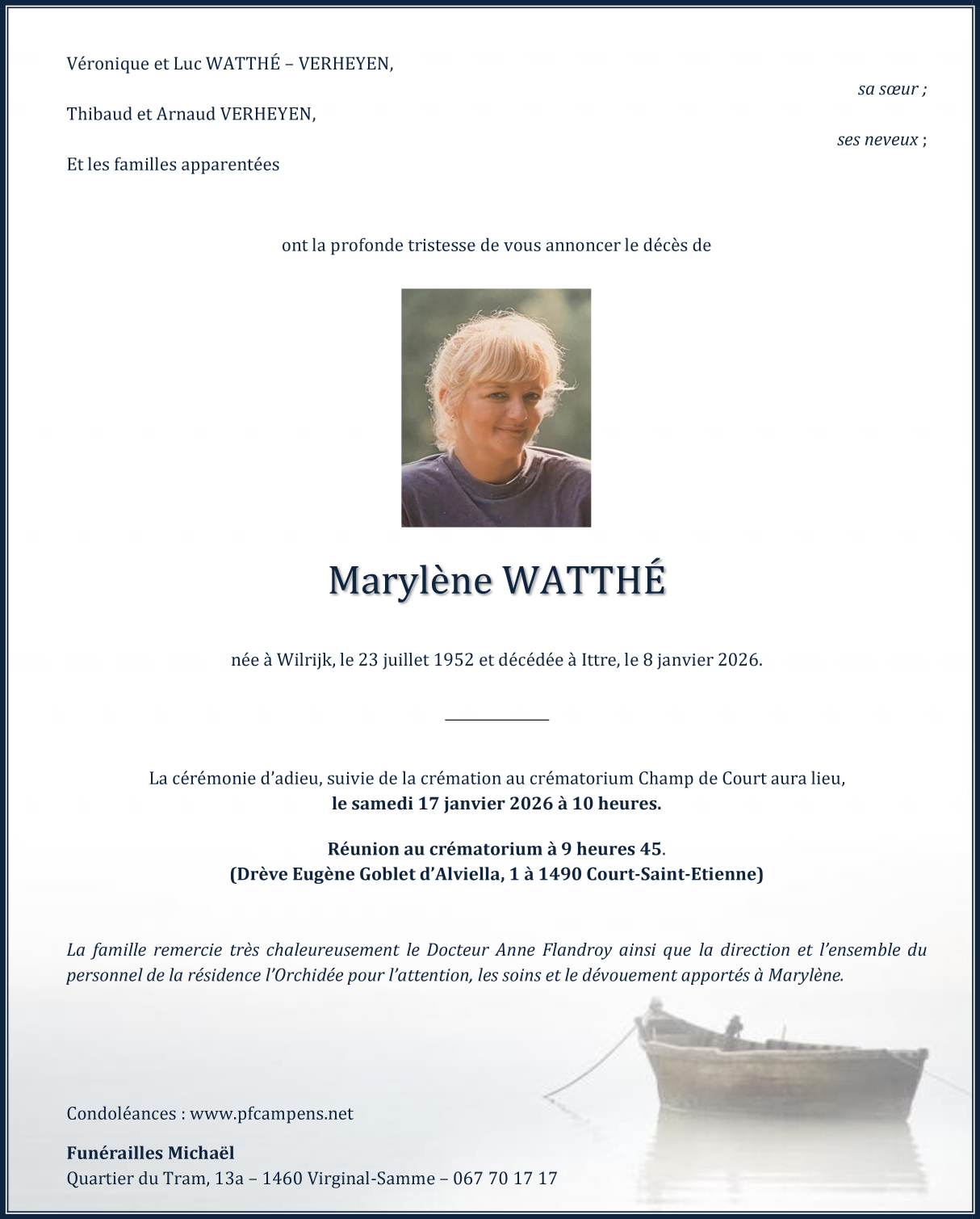 Décédée à Ittre (1460) le jeudi 8 janvier 2026 à l'âge de 73 ans