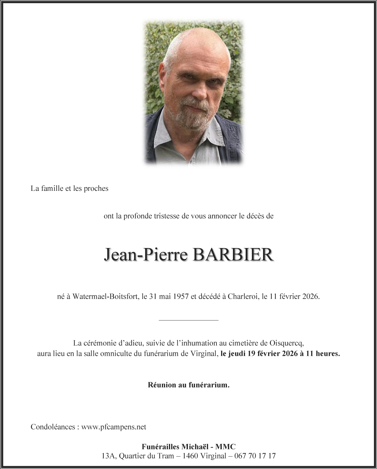 Décédé à Gilly (6060) le mercredi 11 février 2026 à l'âge de 68 ans