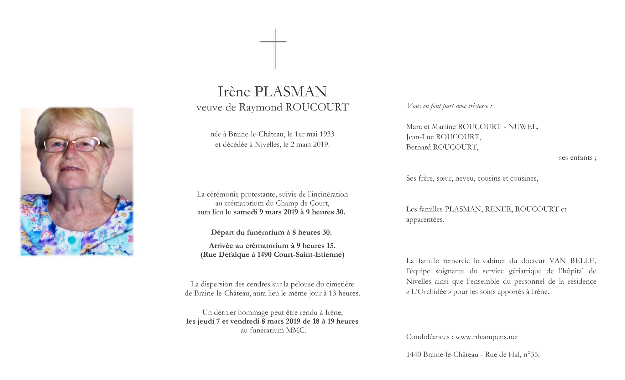 Décédée à Nivelles (1400) le samedi 2 mars 2019 à l'âge de 85 ans